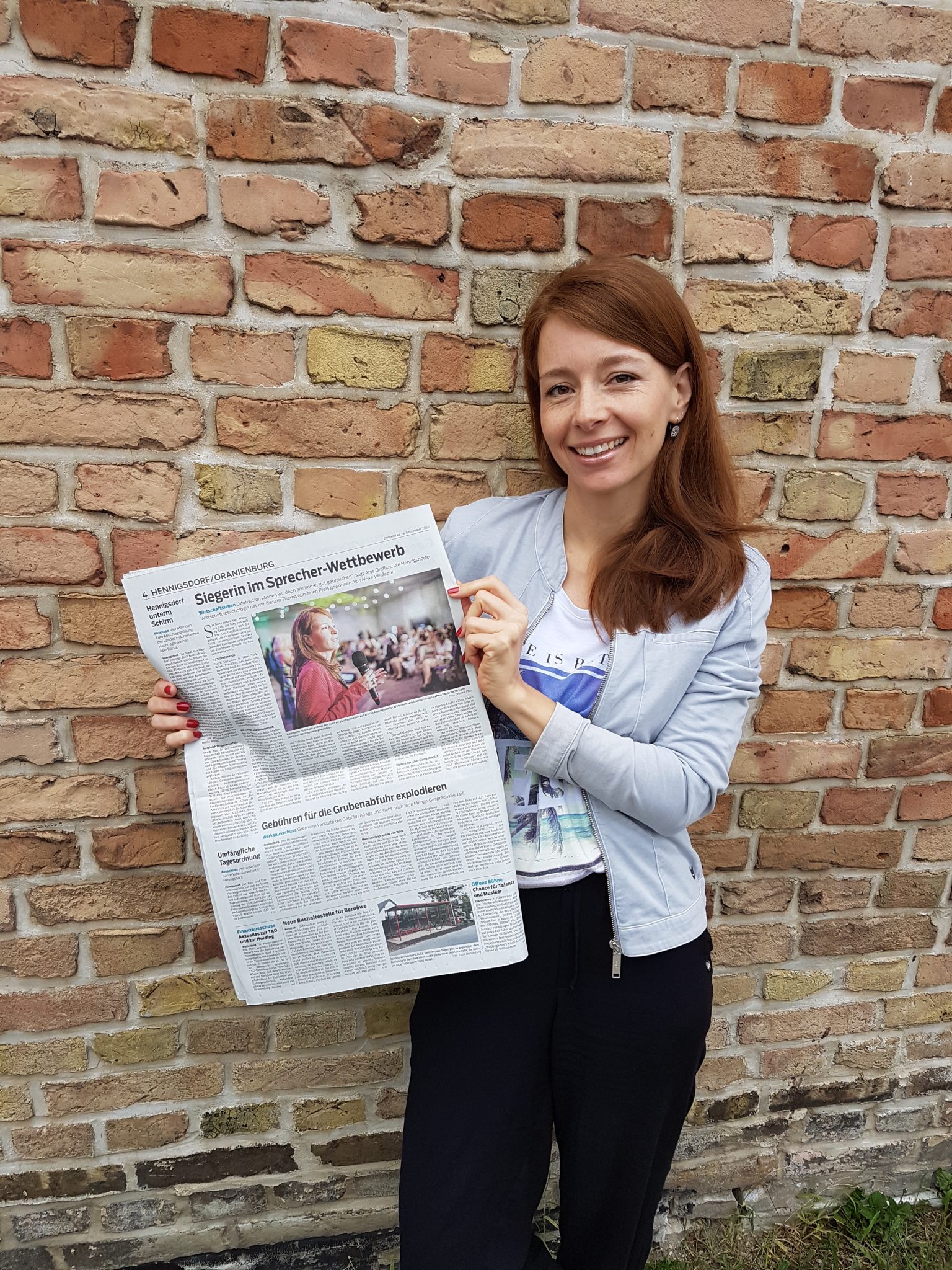In einem Artikel der MOZ wird über Anja Graffius Teilnahme am rekordträchtigen Sprecher-Wettbewerb mit 73 Teilnehmenden berichtet.